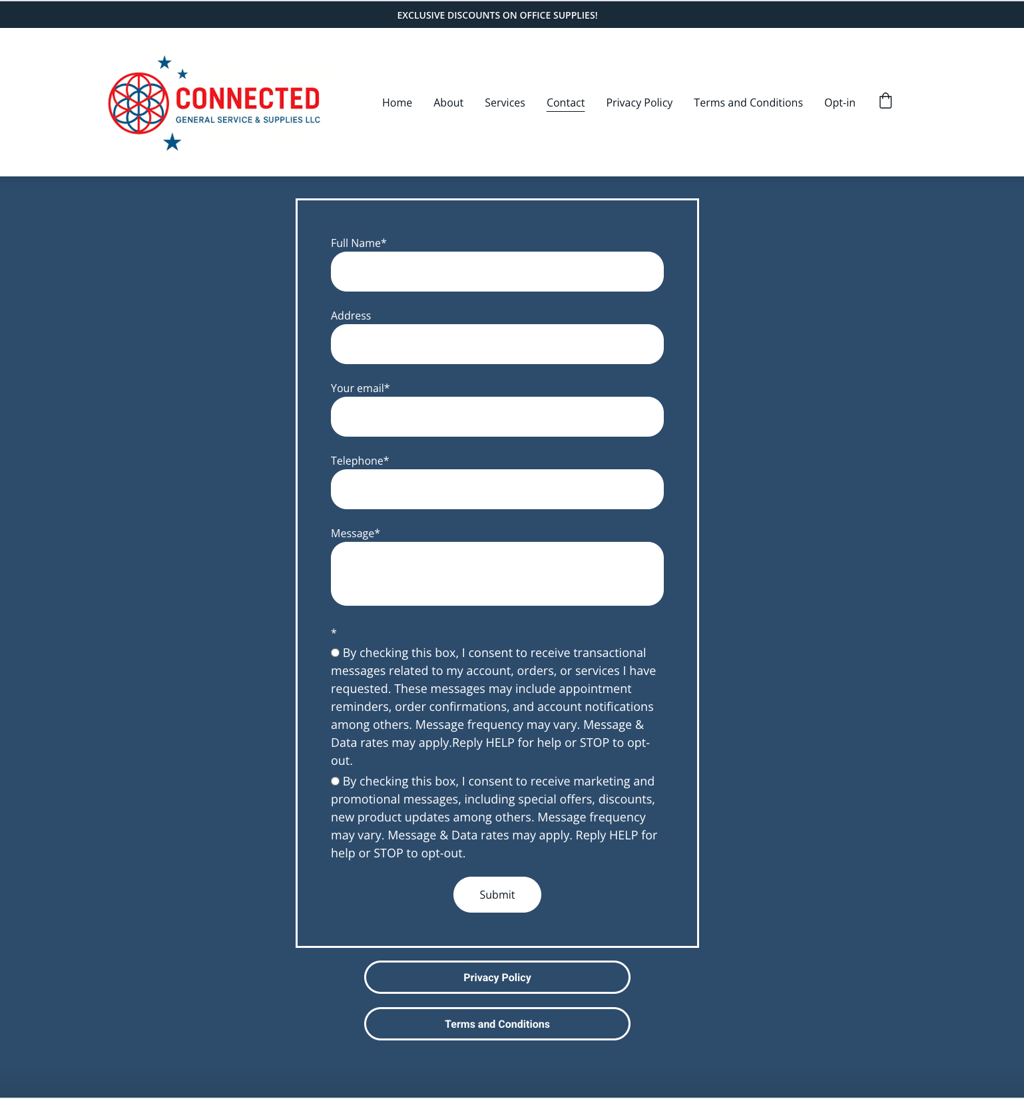 This form serves as explicit consent (opt-in) to be contacted via text message through our toll-free number.